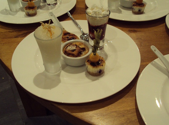 Their assiette of dessert - they had it all - canapes, 2 courses, then an assiette dessert. This one was chocolate tart, glazed lemon tart, spoon of creme brulee, raspberry lavender shortbread (heart shape) and lemon meringue pie.