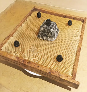 The honeycomb was a whole tray taken out of the hives at Upton Smokery. It made the ideal 'plate' to sit the cheese on. We did put a plate underneath however - you have to respect other people's tables!